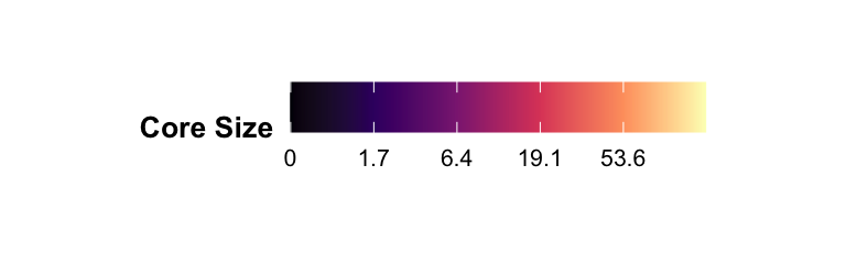 | Fire Scar Interior | Mean Fire Scar Core Size | Measures the average size of the “core” or interior area of fire scars, buffered from the unburned edge. It represents the average extent of uninterrupted, high-intensity burning. Larger values indicate larger, more completely burned scars, while smaller values suggest smaller or narrower scars with more edge influence. |